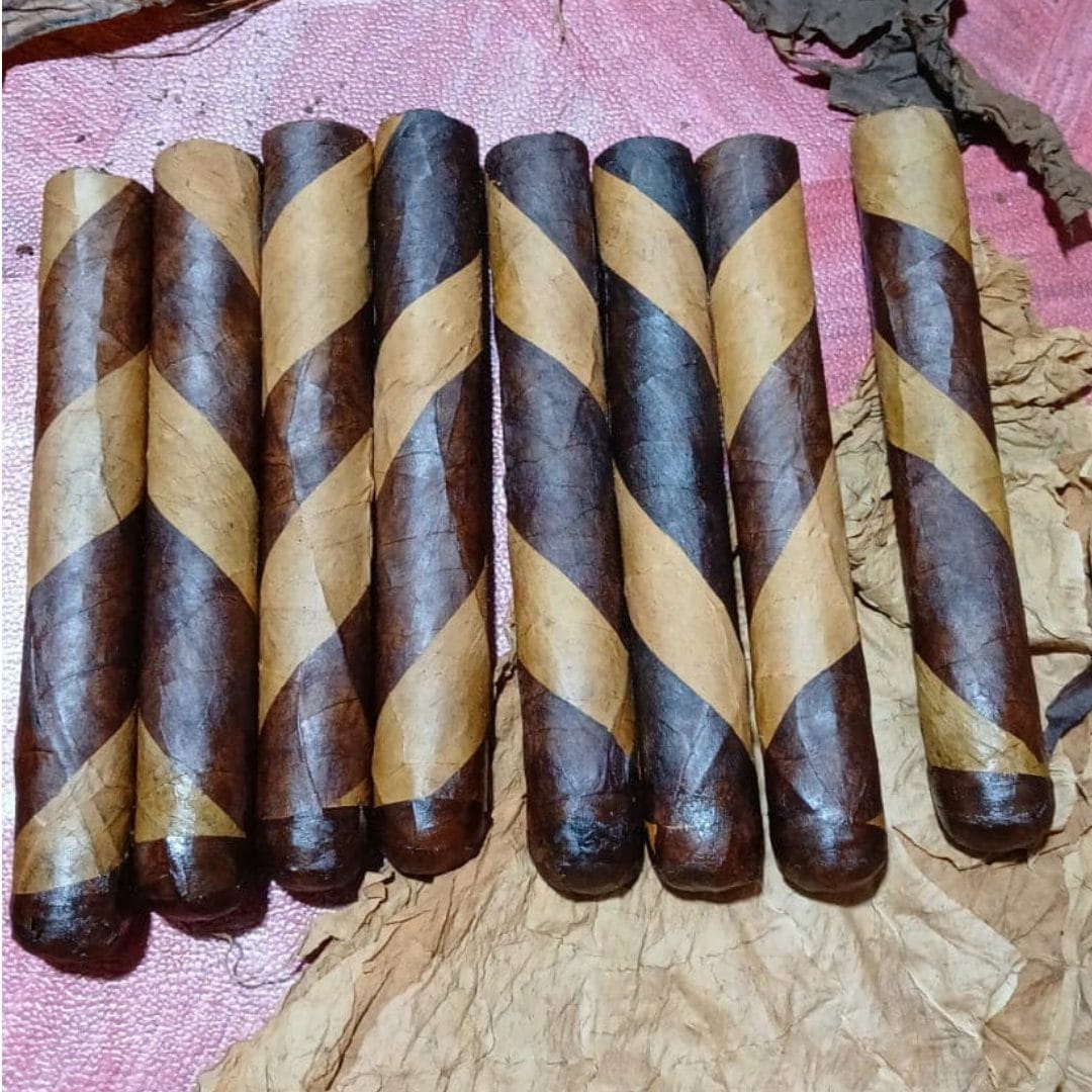 These are truly beautiful cigars! The double wrapper or “barber pole” combines a superb Connecticut Shade with a dark San Andres maduro wrapper. Cuban seeded binder and fillers from Dominican Republic make this a smooth but flavorful cigar. Available in 2 sizes 6×60 and 6×52